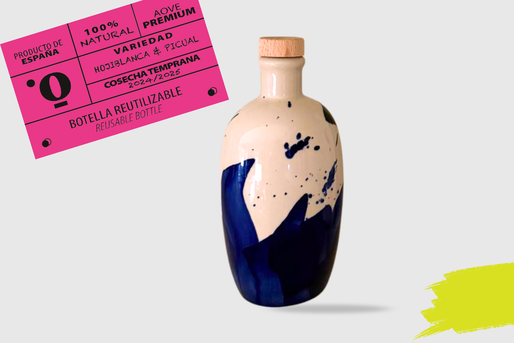 AOVE Cosecha Temprana | Botella Cerámica Reutilizable 250ml | Hojiblanca & Picual